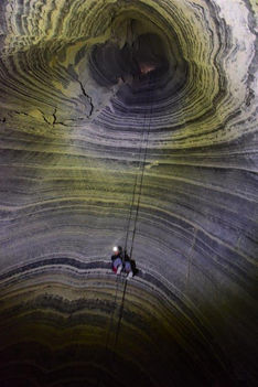 הכניסה למערה בגלישה של כ5 מטרים ולאחריה גלישה בפיר אנכי עוצמתי מרשים ויפיפה בגובה 80 מטר!